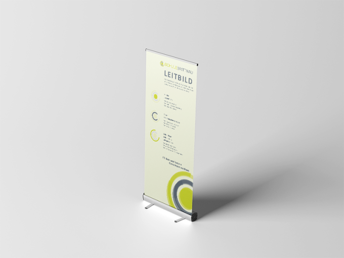 Rollup, Plakat und Flyer zum Leitbild der Schule Brittnau.