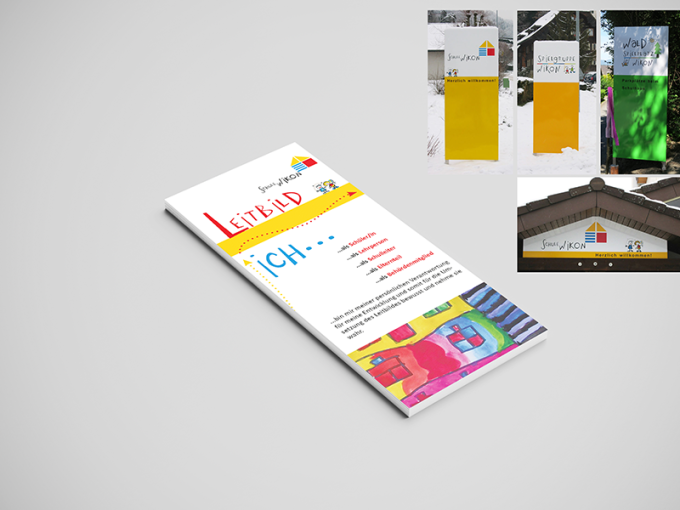 Rollup, Plakat und Flyer zum Leitbild der Schule Brittnau.